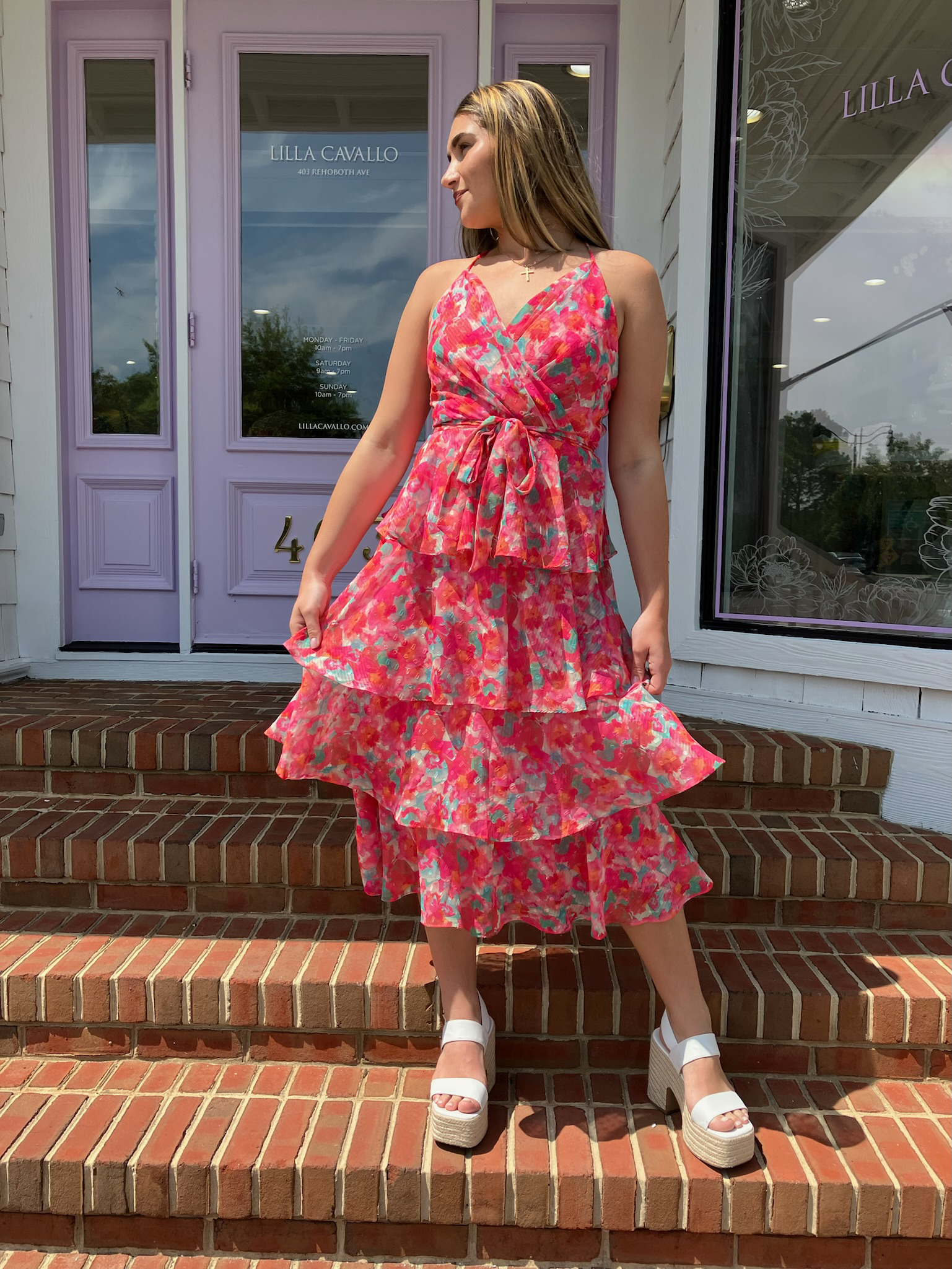 Home Maxi Dress Bright Flowy Tiered Rose Coral Maxi Dress