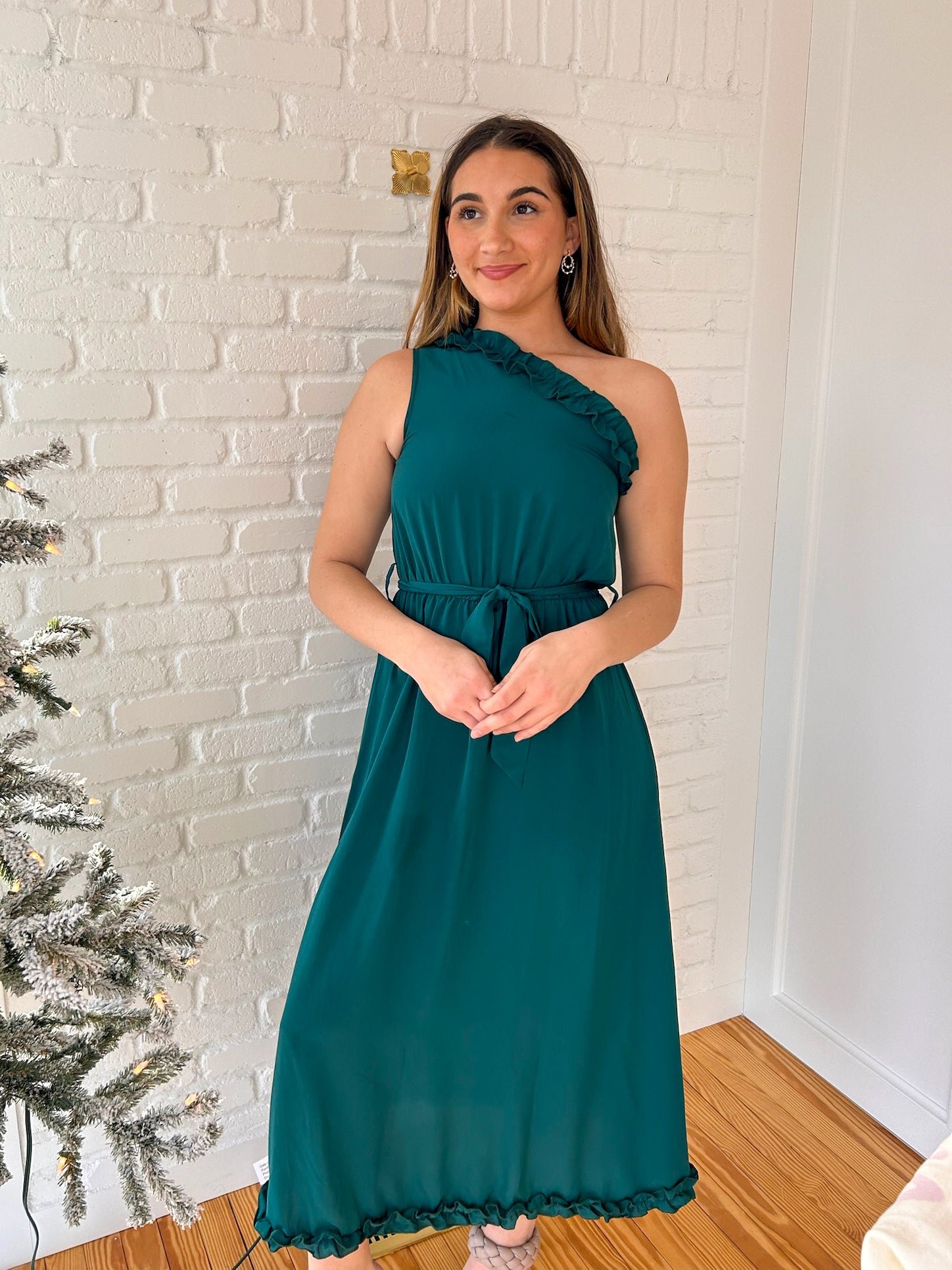 Be the first to review “Green One Shoulder Ruffled Maxi Dress” Cancel reply
