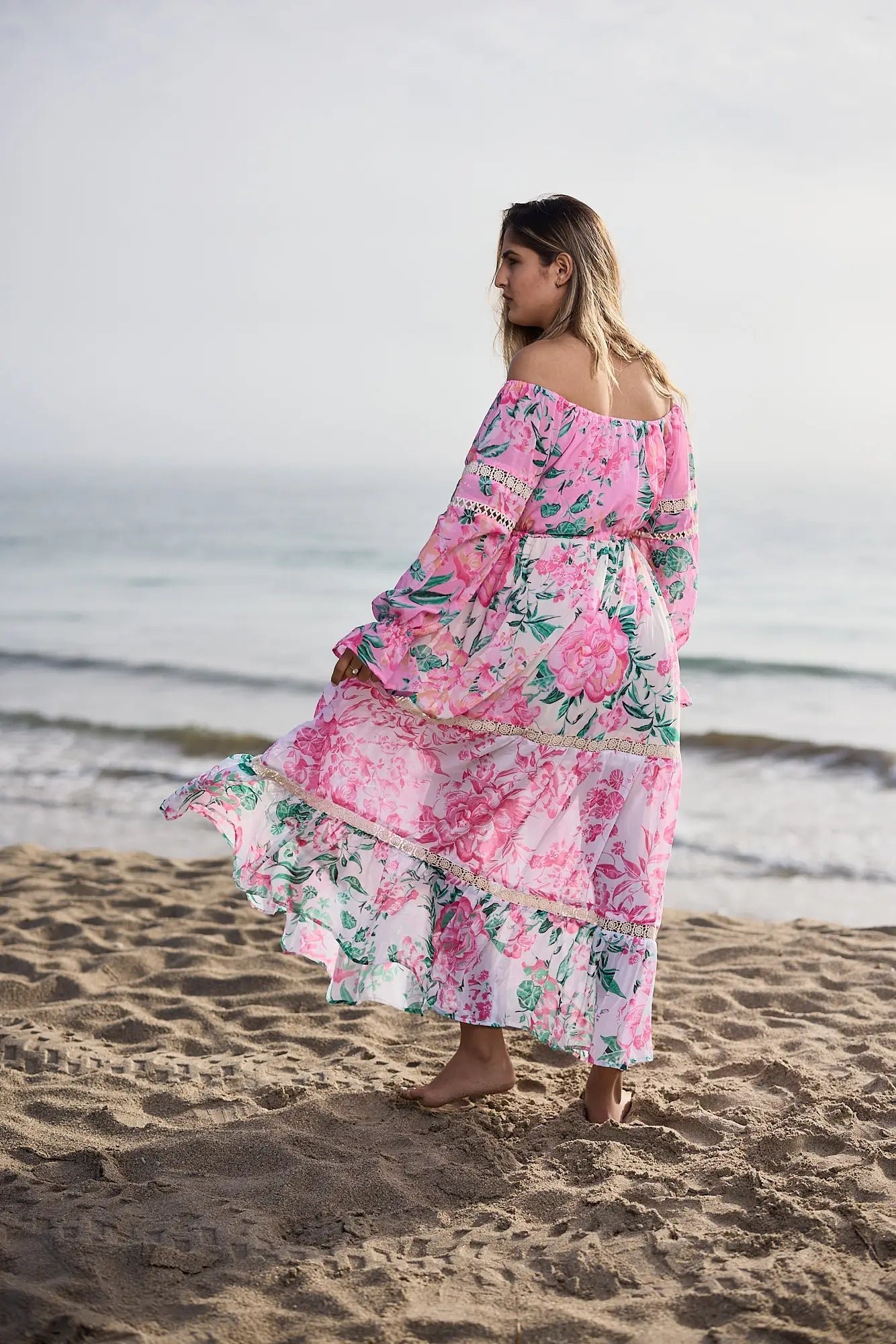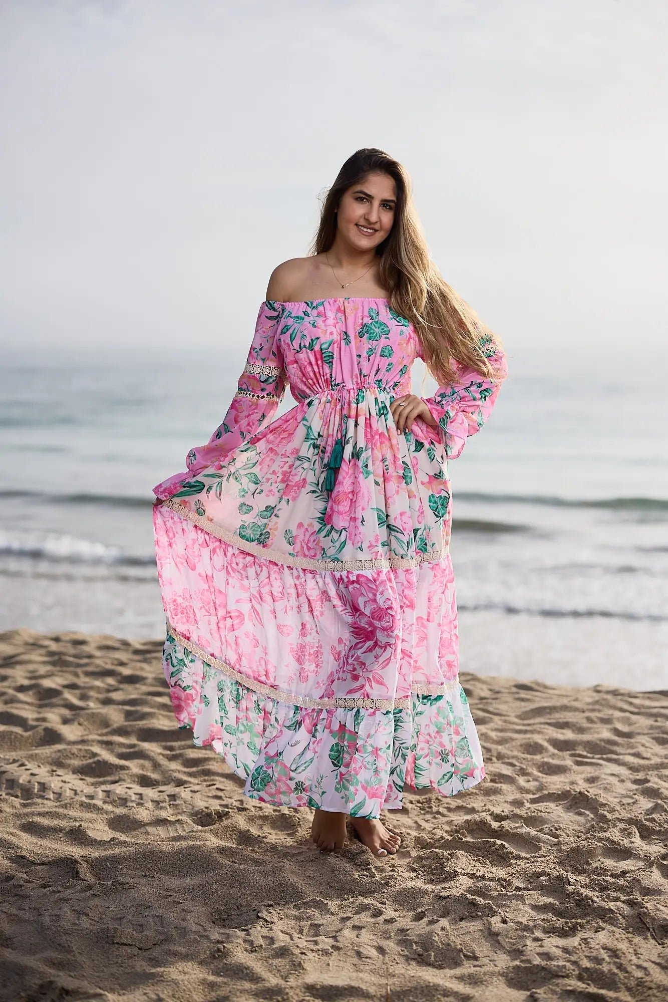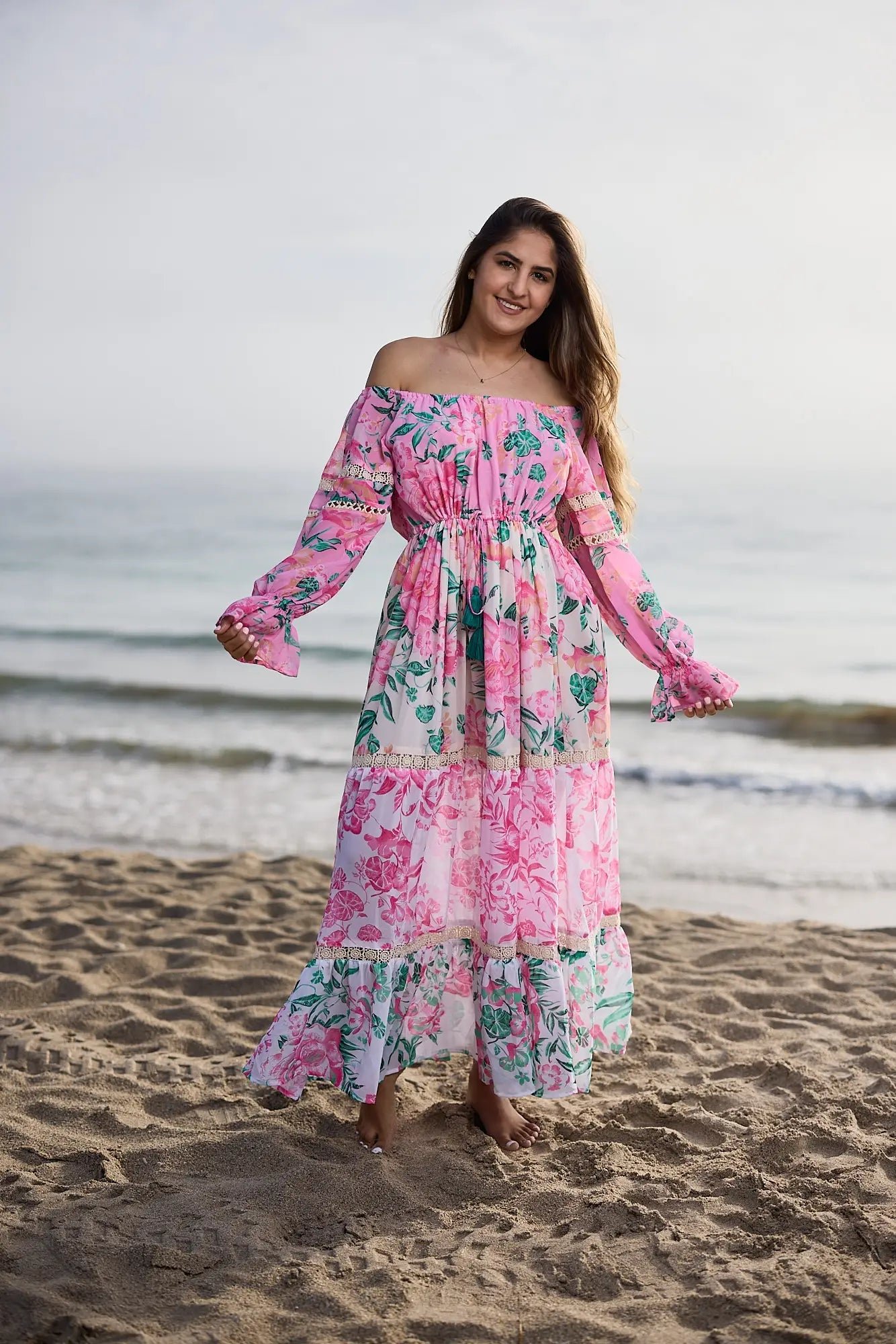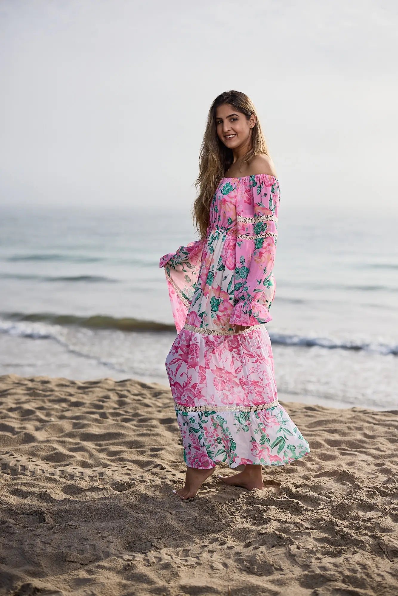 Beautiful viscose off the shoulder dress. Elastic on the neckline. allowing you to wear it round neck or off shoulder.