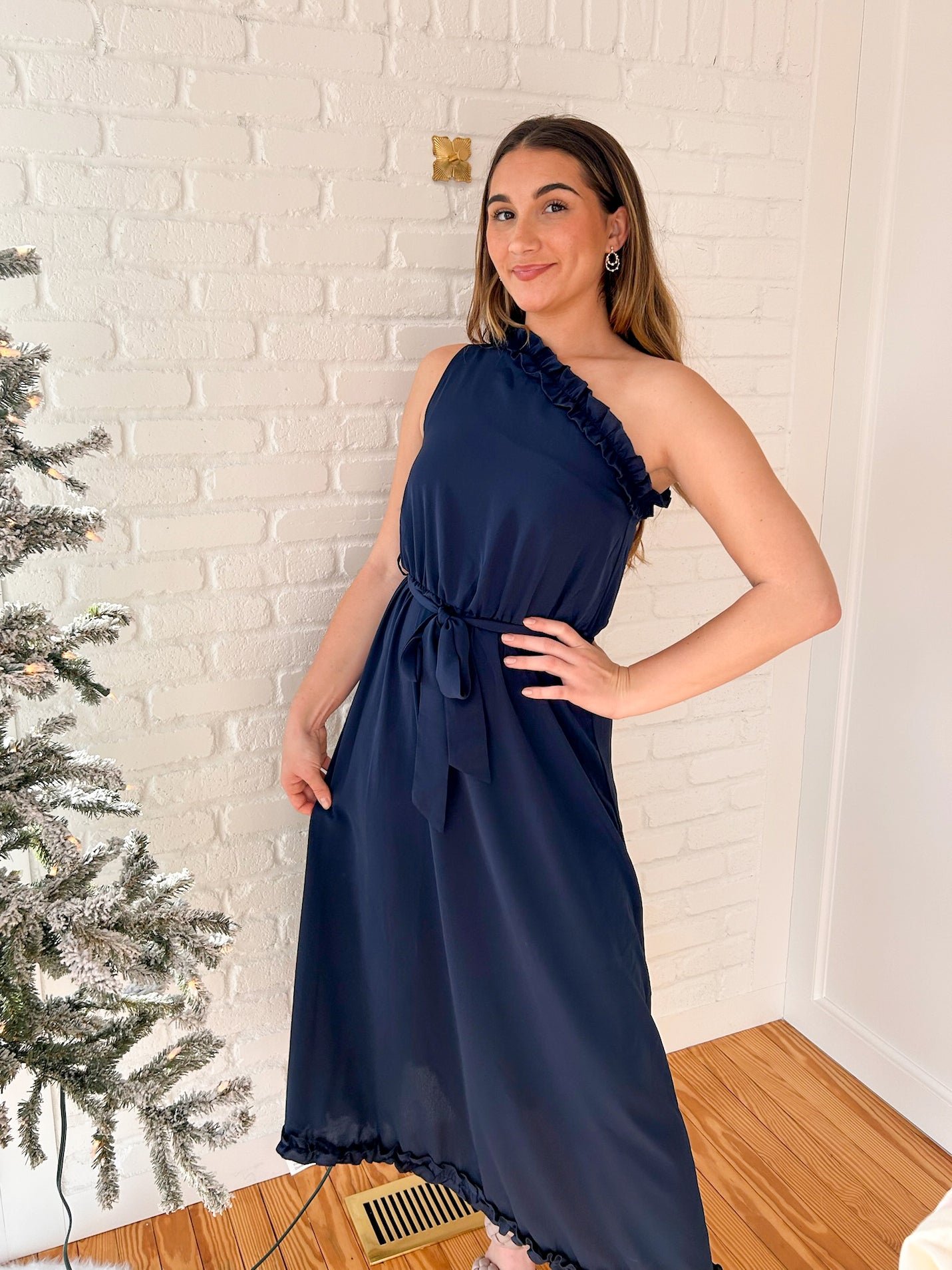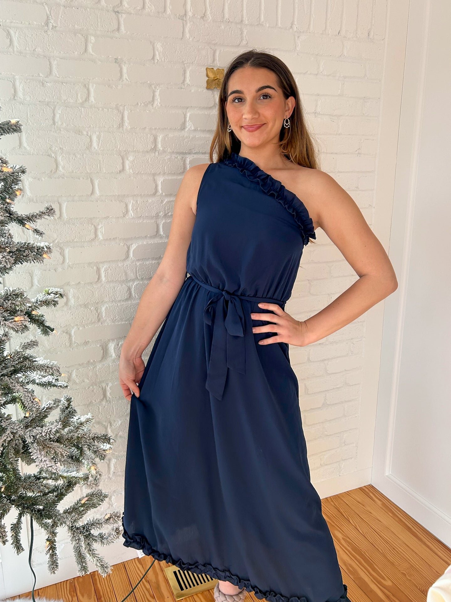 Be the first to review “Navy One Shoulder Ruffled Maxi Dress” Cancel reply