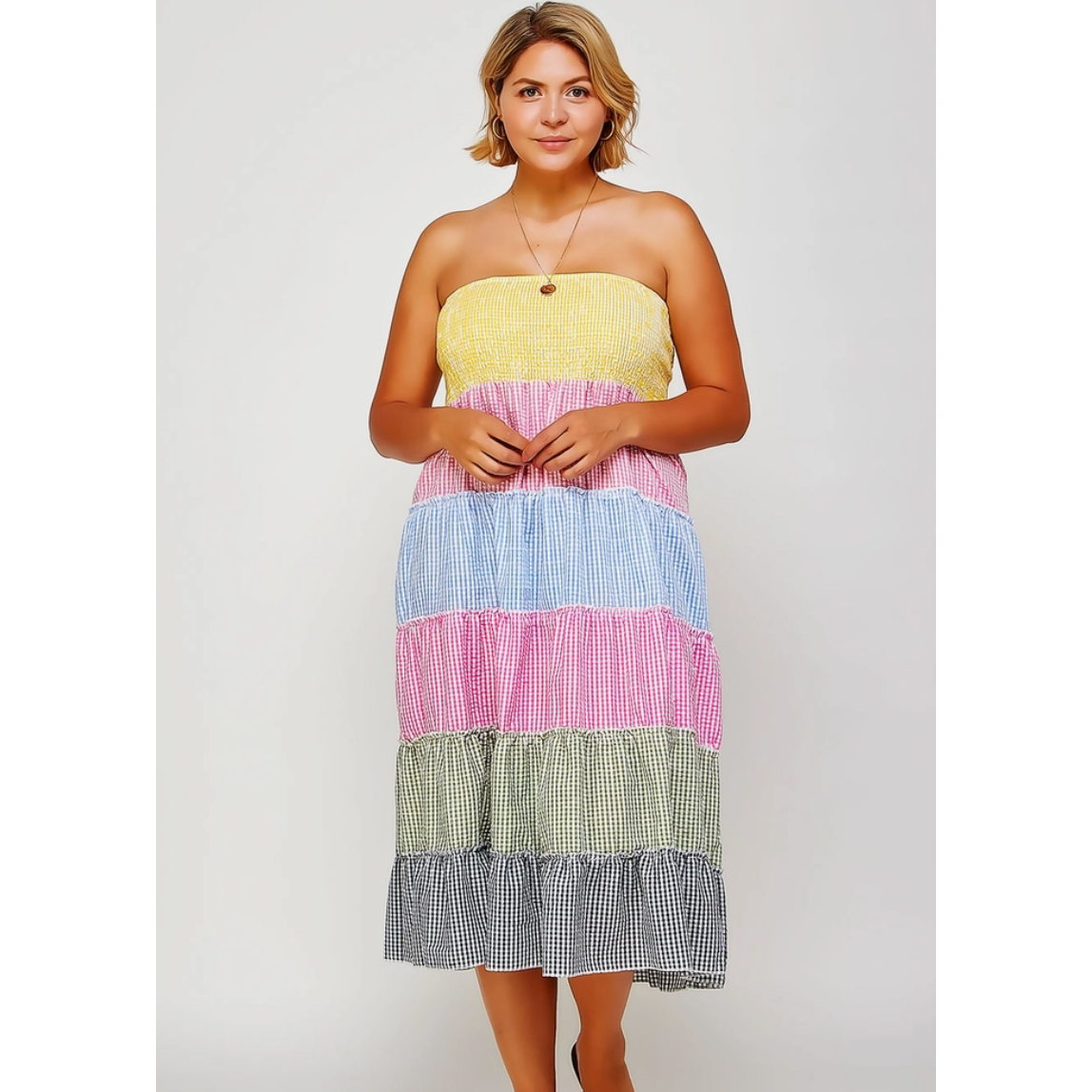 Be the first to review “Tiered Smocked Gingham Convertible Curvy Fit Skirt Dress” Cancel reply